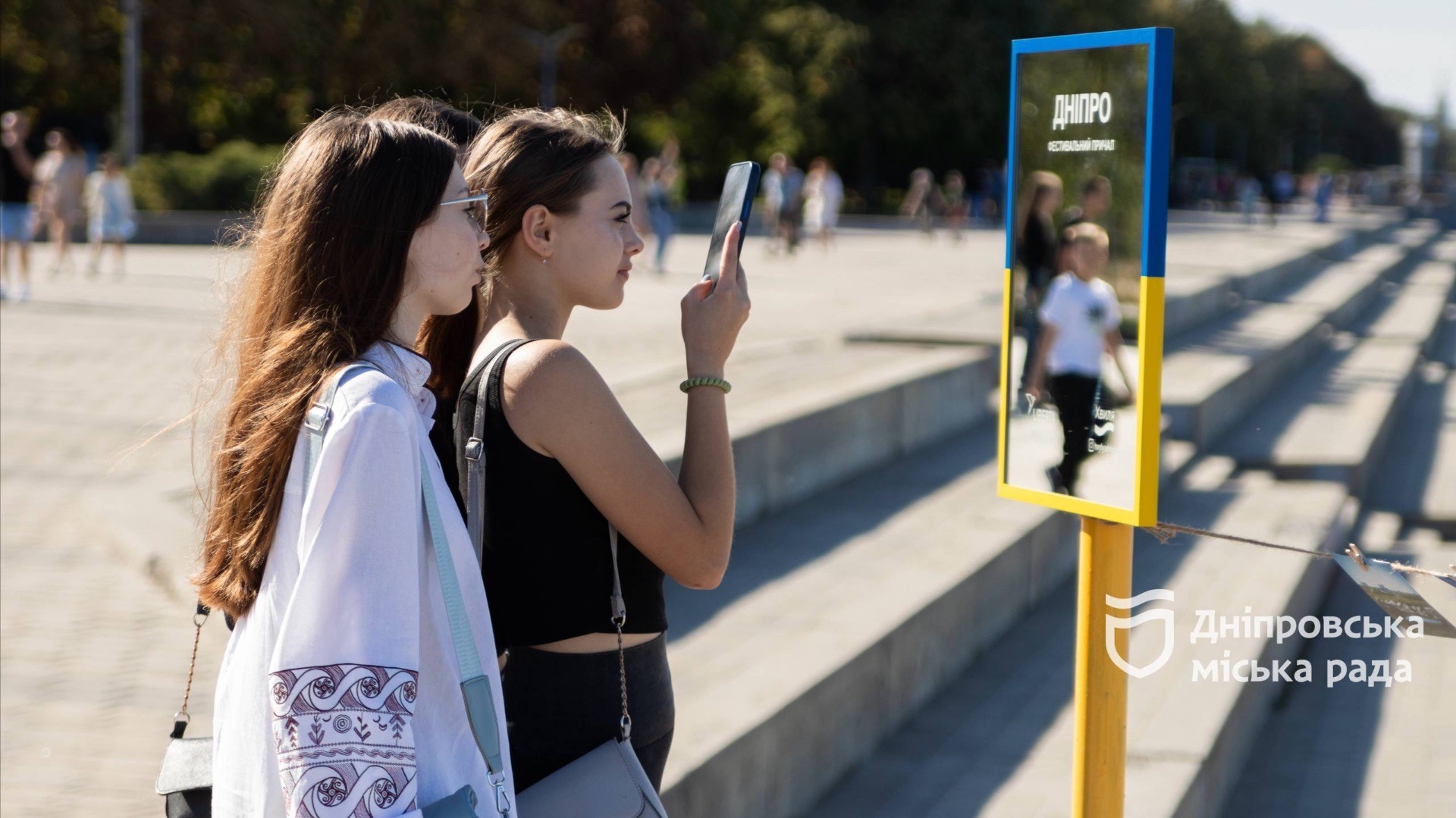 У Дніпрі на Фестивальному причалі з’явився новий арт-об’єкт — велике дзеркало з написом «Дніпро». Його встановили 13 вересня до Дня міста. Повідомили у Дніпровській міській раді.