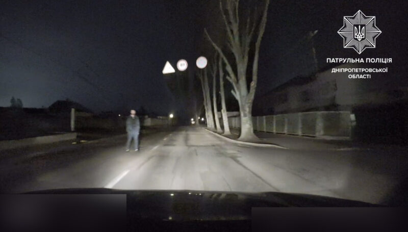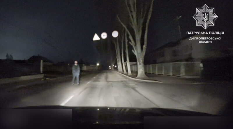 У темному одязі та без світлоповертальних елементів. Такого пішохода, який рухався прямо посеред проїзної частини під час комендантської години виявив у Дніпрі екіпаж патрульних на вулиці Янтарній. Чоловік до того ж перебував у стані сп’яніння та не мав документів, що посвідчують його особу.