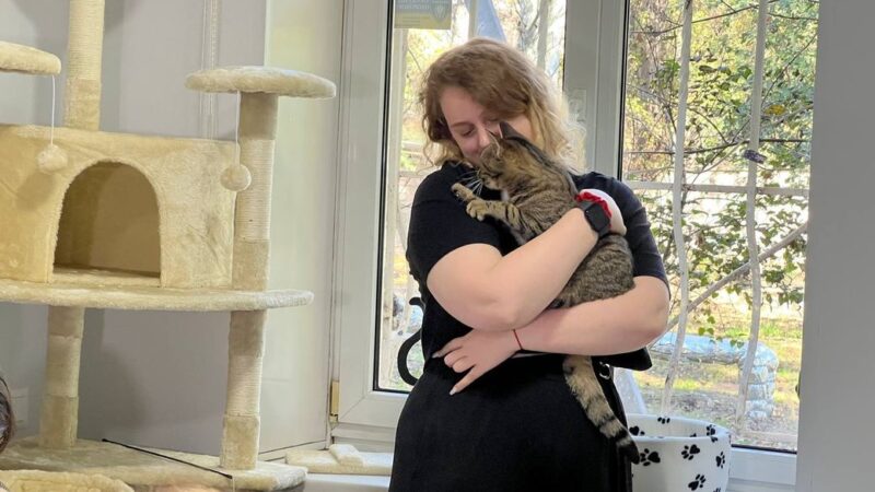 Фото: засновниця кав’ярні Евеліна Критченко разом із кішкою Мусе, Суспільне Дніпро.