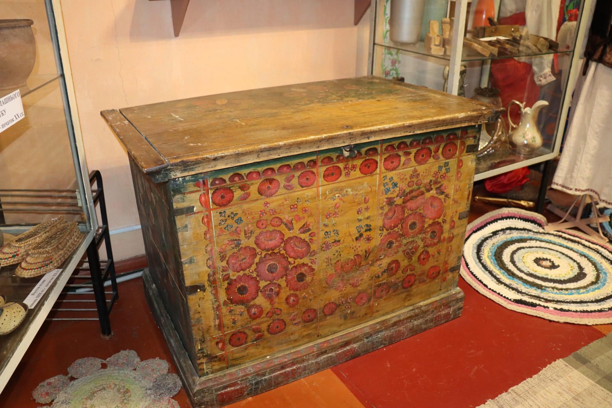 На Дніпропетровщині у народному історико-краєзнавчому музеї імені Миколи Занудька в Покрові зберігається унікальний експонат — старовинна дерев’яна скриня, що стала справжнім свідком історії українського побуту. На перший погляд — звичайний предмет, але придивившись ближче, можна побачити витвір народного мистецтва, який поєднує красу, традицію й глибину культурної пам’яті. Про це розповіли на сайті міської ради.