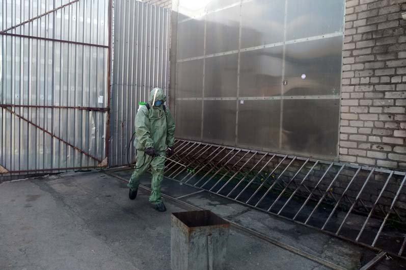 За допомогою оприскувачів та із використанням розчину гіпохлориду натрію, здійснена санітарна обробка торгівельних рядів та прилеглої території ринку.