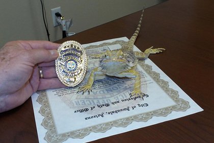 Бородата агама по кличці Айро прийняла присягу і навіть отримала поліцейський значок. Рептилія потрапила в поліцію, щоб виявляти по запаху деякі види наркотиків.