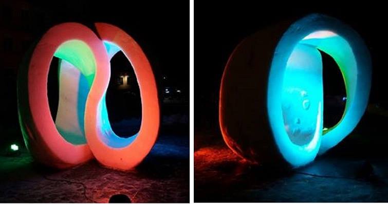 “Українська команда зі сніжного блоку заввишки 3,5 м висікла скульптуру “Спіраль часу”. На її створення витратили більше 4 днів”, – розповів один з учасників Богдан Куцевич, повідомляє twitter.com.