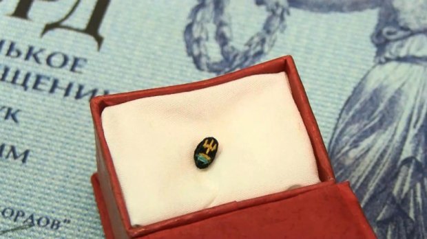 Таку роботу краще розглядати через лупу або окуляр. Адже розмір зернятка лише 3 на 8 міліметрів. Національні символи, вишиті на ньому, виявилися найменшими у світі. Це визнали експерти Книги рекордів України.