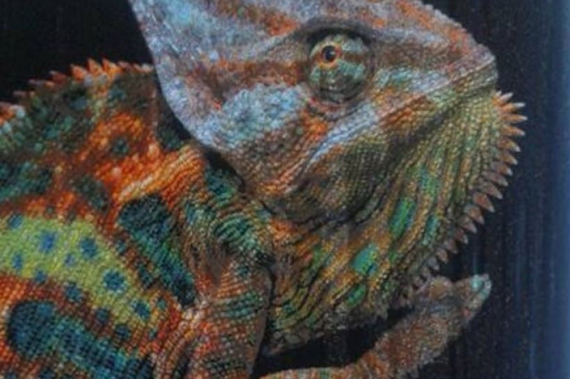 Київська майстриня Тетяна Романенко створила неймовірну картину – вона вишила бісером гігантського хамелеона! Майстриня для цього використала 748 відтінків кольорів бісеру!