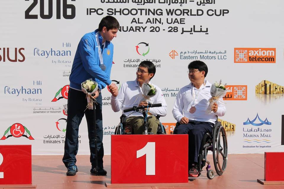 Днями у місті Аль-Айн (ОАЕ) завершився  Кубок світу з кульової стрільби серед спортсменів з ураженням опорно-рухового апарату. За підсумками загальнокомандного заліку національна паралімпійська збірна України здобула п’ять нагород, дві з них найвищого ґатунку, та стала другою на міжнародному турнірі. Першою стала команда Словаччини, а третіми – господарі змагань – команда Об’єднаних Арабських Еміратів.