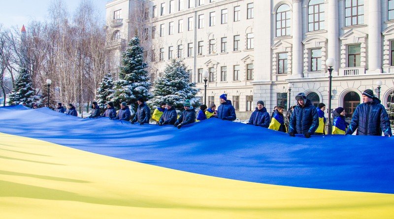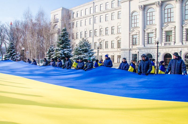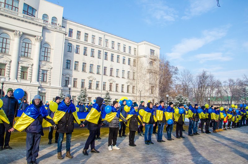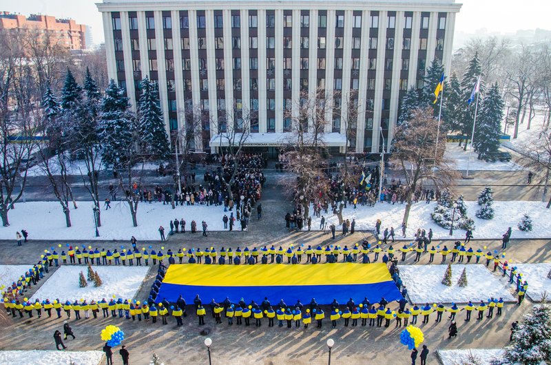 Українські пісні, синьо-жовті квіти та величезний прапор: Дніпропетровщина святкує День Соборності (ФОТОРЕПОРТАЖ)