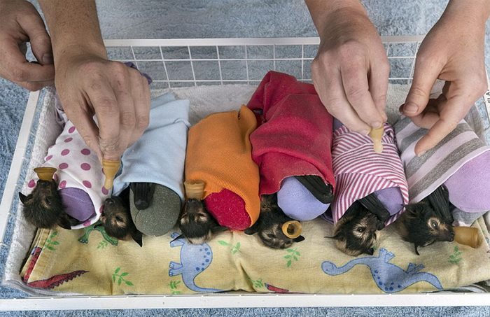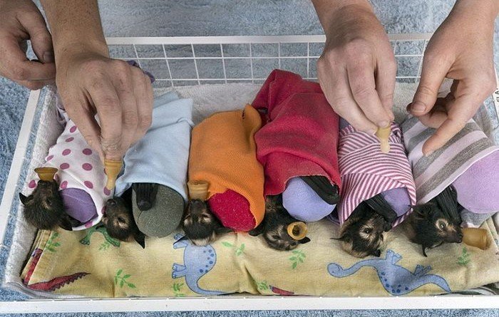 Детеныши летучих мышей обычно попадают в Tolga Bat больницу, будучи пораженными клещевым параличом, или если их мама умерла или не может их больше кормить (часто из-за этой же болезни). Вот уже 25 лет волонтеры нянчатся с крылатыми детенышами, пока малыши не выздоровеют, и тогда их отпускают на свободу.