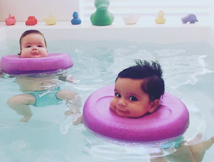 Эти тренировки и процедуры положительно сказываются в дальнейшем на обучаемости детей к плаванию, а также на том, насколько скоро они начнут ходить.