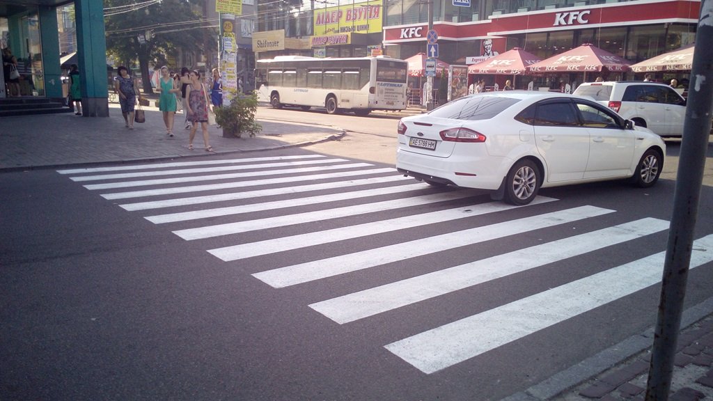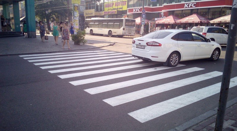 В центре Днепра, на улице Владимира Мономаха (бывш. Московская) появился пешеходный переход. Это место очень оживленное, ведь там находится множество офисов, торгово-развлекательных центров.