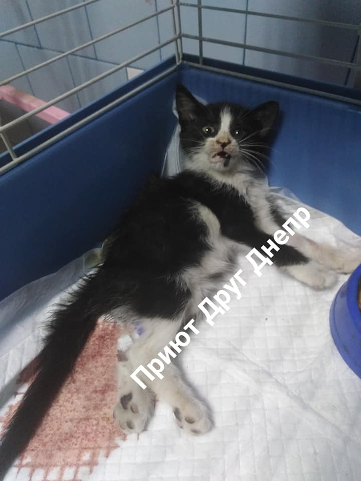 К днепровскому волонтеру недавно обратились люди по поводу двух котят, которых выкинули на детскую площадку. Один из них парализован, его состояние очень тяжелое.