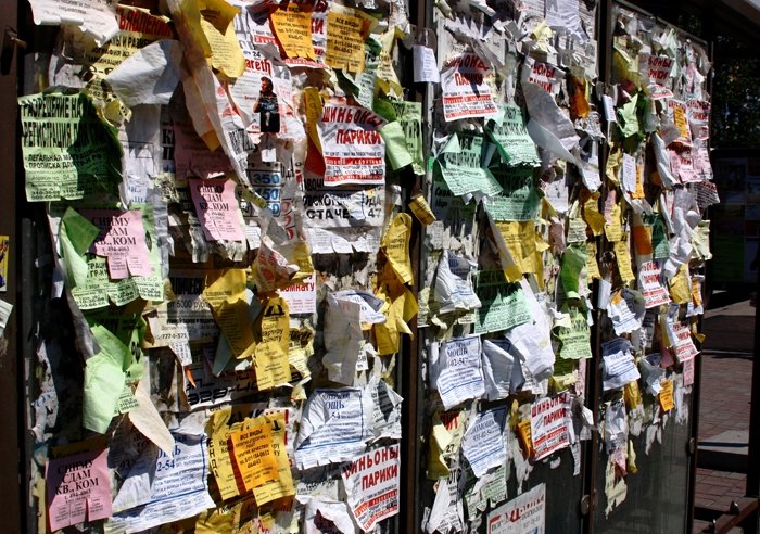 В Днепре собрали рабочую группу, которая борется с расклейкой объявлений в центре города – спецотдел по зачистке Днепра от объявлений на столбах и фасадах зданий.