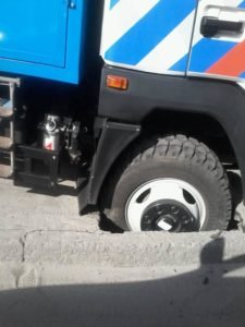 В Днепре из-за плохой дороги «пострадала» машина коммунальной службы (Фото)