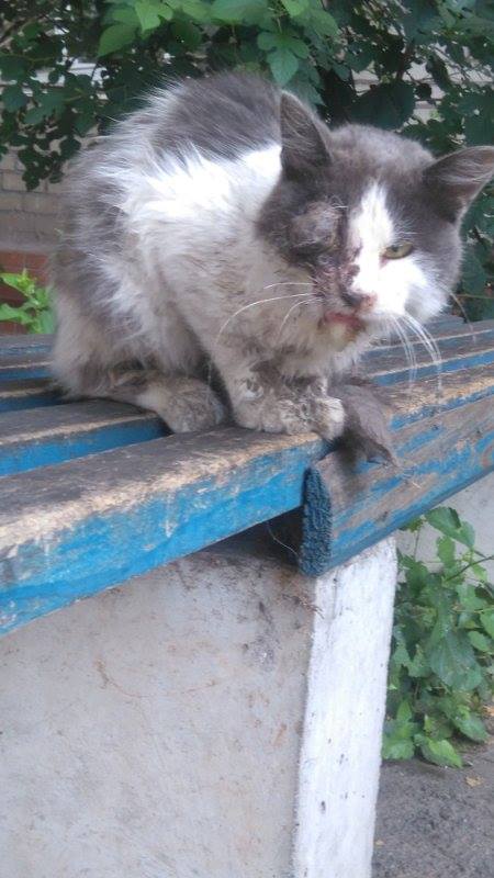 Вот это несчастный кот по имени Яша стал жертвой своей же доверчивости. Кот был найден волонтерами в критическом истощенном состоянии, обезвожен, выбит глаз, перебита челюсть, изо рта вытекает слюна с гноем и кровью, в области правого глаза шарообразное месиво. Поражает, что пушистый ребенок лежал в таком состоянии возле жилого дома, а люди равнодушно проходили мимо.