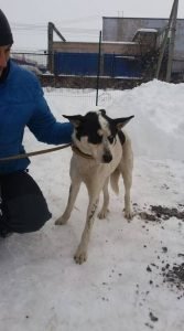 – Хаски, серо-белая, черная сука. Есть ошейник. Найдена на Янтарной.
