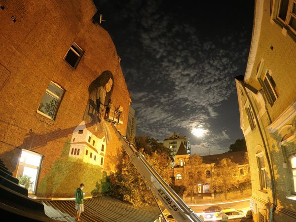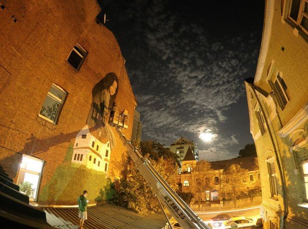 В последние месяцы в Днепре появилась просто-таки галерея уличных муралов – огромных картин на стенах зданий. Очередное такое творение украсило торцевую стену старинного дома на ул.Фабра, 11. Эту картину создал известный днепровский райтер (художник-граффитчик) Валерий Колор, известный под прозвищем Zdesroy. Его предыдущая работа – на стене дома под номером 56 на проспекте Яворницкого (Карла Маркса) красуется классический Супермен из комиксов.