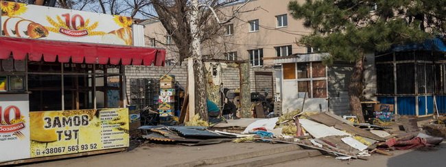 Это не традиционный выезд оперативной группы коммунальщиков на снос незаконных МАФов. Это то, что происходит за несколько дней до их приезда, сообщает Информатор. Владельцы ларьков, которые сейчас больше похожи на груду металла, накануне получили предписание от КП «Благоустрій». В нем указана причина и дата сноса, а также просьба вывести имущество самостоятельно — в ином случае это сделают коммунальщики. Вот владельцы маленького бизнеса и решили покинуть место заранее.