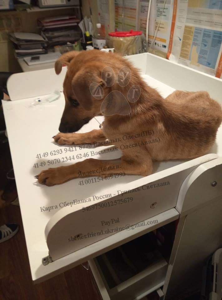 «Больной парвовирусным энтеритом щенок попал под машину, разве так бывает, что вот все беды и сразу?! Заболел, выбросил любимые хозяин, шёл за спасением и угодил под колёса. На спасение Малика потрачено уже более 7000 грн. И как дальше быть? Забрать его из клиники и лечить в приюте? Да он и дня не проживет без инфузомата. Умоляем вас, помогите оплачивать лечение Малика. Каждый день – плюс к долгу минимум 900 грн. Опускаются руки, уходит надежда. Люди добрые, каждые 10 грн помогут вытянуть Малика с того света», – пишут волонтеры приюта «Друг».
