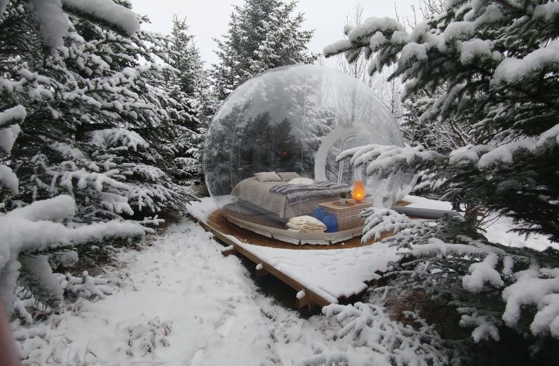 В теплую пору года из прозрачных пузырей в дневное время суток открывается восхитительный вид на реку или лесную чащу, а ночью можно наблюдать фантастическое сияние звезд и мерцающие огоньки самолетов или спутников.