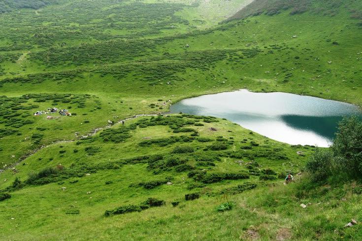 Неподалеку от этого озера есть еще одно, меньшее по размерам, в форме полумесяца. Этот водоем также образовался на месте ледника, который был тут много лет назад. Вода в этих горных озерах прозрачная, дно укрыто камнями, тут плавают тритоны и пиявки.