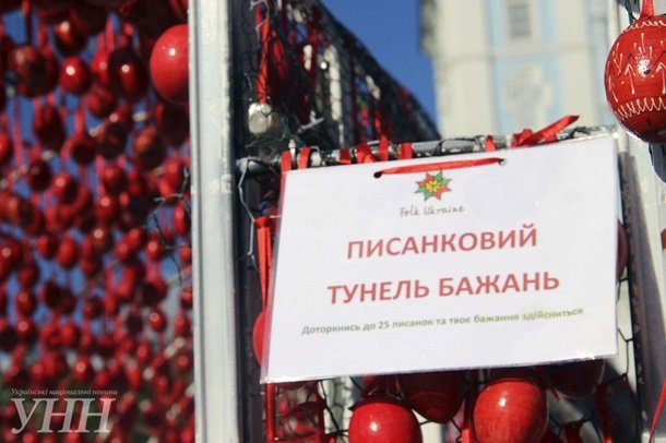 В Киеве на Михайловской площади установлен Тоннель желаний – 20-метровый коридор из писанок. Тоннель поставили в рамках мероприятий к VI Всеукраинскому фестивалю писанок, передает УНН.
