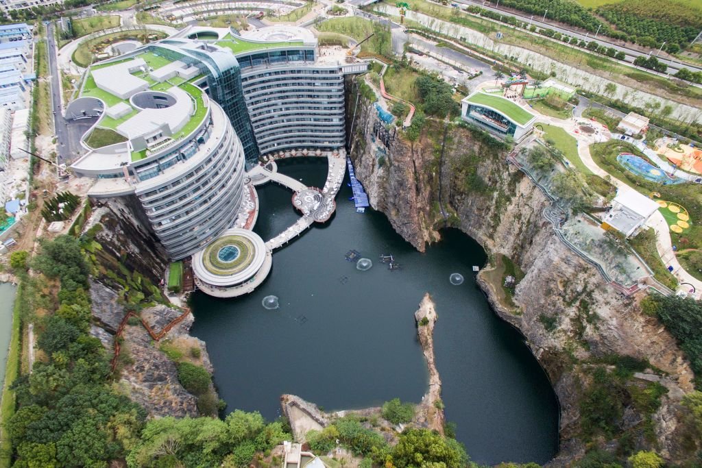 В Китае открыли первый в мире отель в заброшенном карьере (видео)