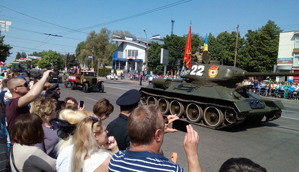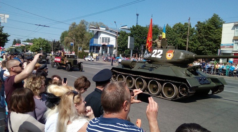 В Кривом Роге накануне Дня Победы прошел торжественный парад с участием восстановленного танка Т-34, освобождавшего Берлин