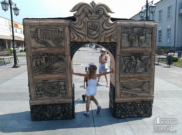 На текущий момент официальной информации о скульптуре, размещенной на Почтовой площади возле театра имени Тараса Шевченко, нет. Сама скульптура выполнена в виде брамы, по бокам украшенная дощечками, на которых изображены культурно-значимые места в Кривом Роге.