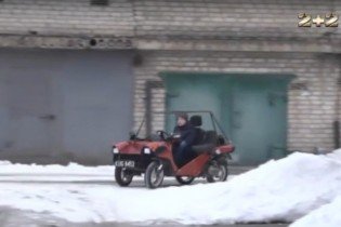 В одном из гаражных кооперативов Кривого Рога дедушка с внуком создали из двух скутеров автомобиль. Как сообщает «ТСН» авторы уникального автомобиля давно любят технику, авто и создание чего-то необычного. Купив два скутера, они превратили их в автомобиль «Вимана» (летательный аппарат, описанный еще в давней индийской литературе). Конструкция автомобиля на первый взгляд простая – два двигателя, колеса, удобное сидение. Вмещает чудо-авто трех человек.