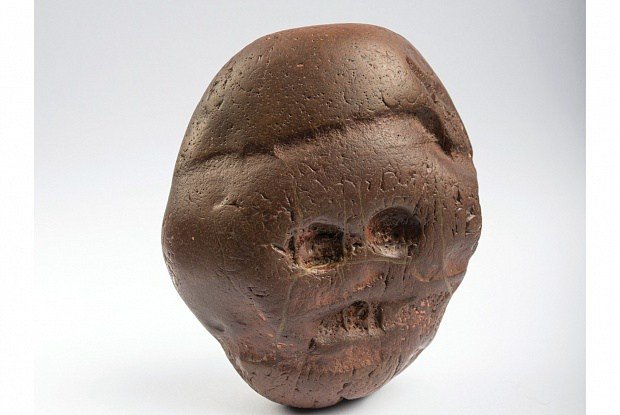 Этот камень называют многоликим, поскольку на различных частях его поверхности можно лицезреть три разных лица: первые два похожи на лица австралопитека, а третье напоминает человеческий череп. Ученые утверждают, что провели ряд микроскопических исследований, которые подтвердили, что камень никогда не подлежал искусственной обработке, поэтому, скорее всего, он приобрел специфические формы от взаимодействия с речной водой.