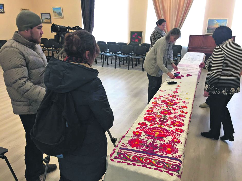 Вместе с рушником одесситка уже побывала в нескольких городах области. “Мы были в Белгороде-Днестровском, Сарате, Черноморске, Рени, Кодыме, Южном”, — рассказывает Пасечная и говорит, что планирует посетить все районные центры области. А в понедельник состоялась встреча художницы со школьниками из пгт Таирово, во время которой ученицы девятого класса вышили несколько узоров на полотне.