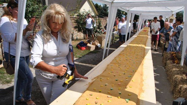 Вот так город Ровно поздравил всю Украину с Медовым Спасом. Этот сладкий, солнечный, янтарный медовик длиной 22,54 метра признан рекордом Украины в категории “Кулинарное искусство”, – сообщила Лана Ветрова.