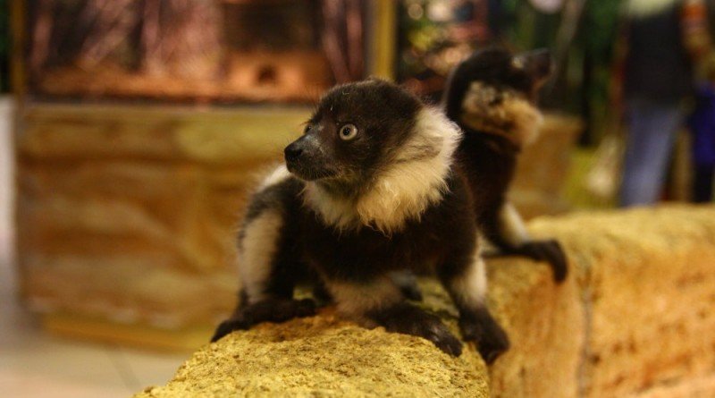 В столичном мини-зоопарке родились редкие черно-белые лемуры вари. Недавно двойняшек, мальчика и девочку, показали публике.
