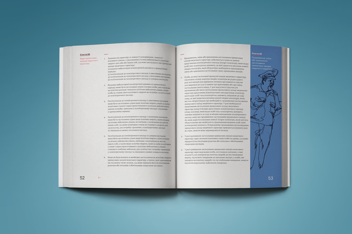Всего в книге 33 рисунка, выполненных красной и синей шариковыми ручками. В издательстве говорят, что книга стала проектом на грани утилитарного и художественного. “Это книга разрушает стереотипное представление о законе как о доступном исключительно специалистам инструменте”, – отмечают в издательстве “Основа”.