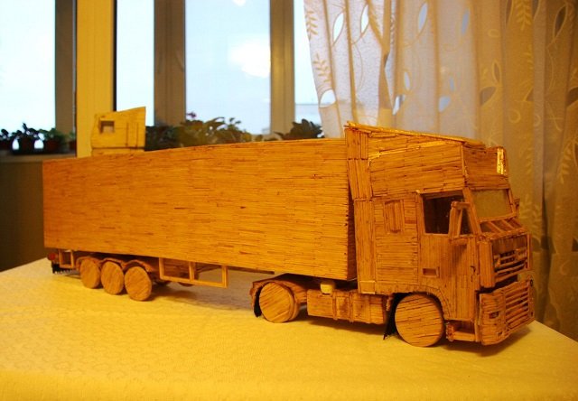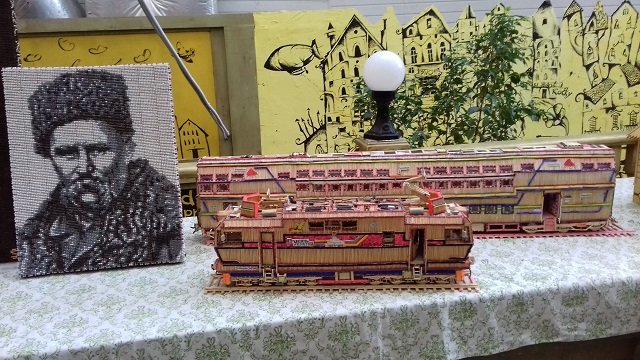 Найбільш насичений деталями виявився локомотив з вагонами. Зсередини він також виглядає, як справжній потяг. Звання найдовшого має макет лінійного корабля, який є копією лінкору «Паризька комуна». Його розмір сягнув 1 метра 78см . Для збору такої конструкції знадобилося близько 13 тис. сірників та рік часу. Автор каже, що ще з дитинства полюбляв конструювати та захоплювався військовою тематикою. 2 панно з використанням клею та без нього, також отримали звання найкращих. Зображення святих оформлене з сірників навіть потрапило до храму.
