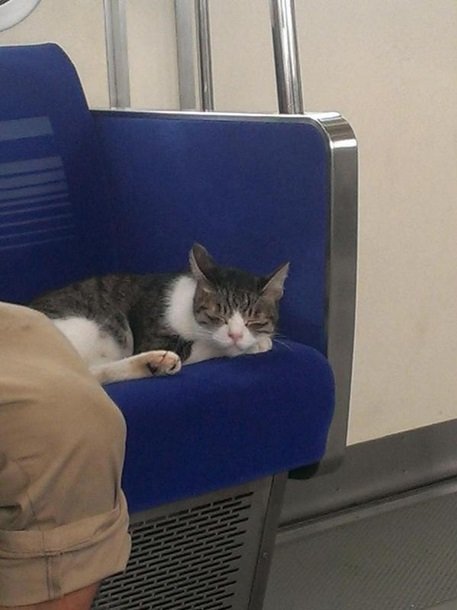 При этом отмечается, что кошка довольно вежлива к пассажирам и способна подвинуться в пиковые часы.