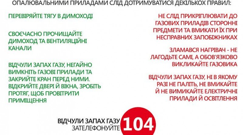 Газові опалювальні прилади – небезпечні для життя, якщо ними користуватися неправильно. Наслідки недбалості – отруєння або вибух. В управлінні цивільного захисту ОДА попереджають: відчули запах газу – мерщій відкрийте вікна, залиште приміщення та зателефонуйте аварійникам.