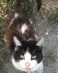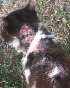 Цей котик з’явився у дворі дніпровської багатоповерхівки декілька днів тому. Ніхто не поспішав надати допомогу бідолазі. Як розповідають волонтери Дніпра, його жахливий вигляд привертав погляди, викликав жалість або огиду, але всі поспішали у своїх справах, і на кота ні в кого часу не знаходилося.