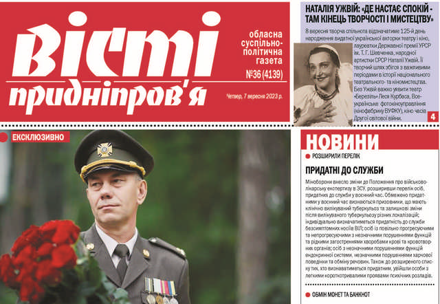 Новий, четверговий випуск обласної газети “Вісті Придніпров’я” – вже у продажу. Наші журналісти зібрали для вас, дорогі читачі, цікаву та актуальну інформацію з життя країни та нашого регіону.