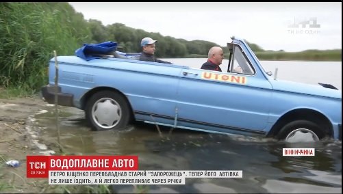 Вінничанин зробив із раритетного «Запорожця» справжній моторний човен. І тепер на машині їздить, плаває, рибалить і навіть полює. А ще катає сільських дітей, бо, де б не з’являлася його амфібія, вона неодмінно викликає захват. Винахідник Петро Кіщенко уже подумує, чи не гайнути на своїй амфібії на морську риболовлю, повідомляє tsn.ua.