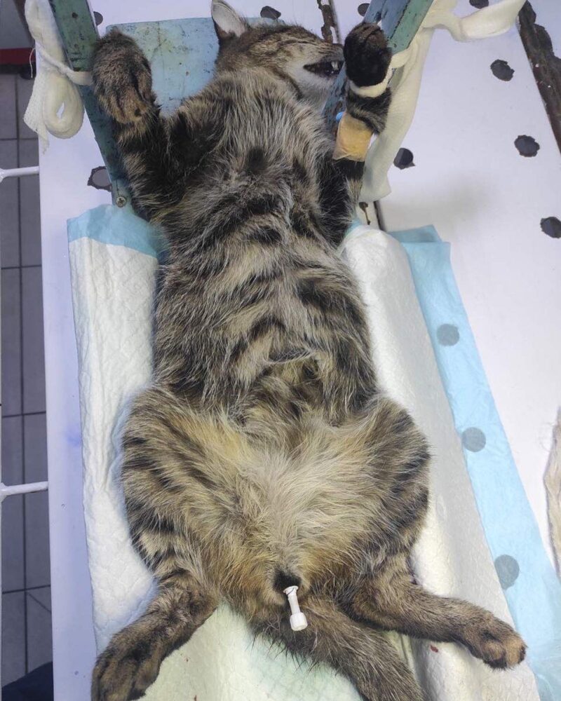Котику робили крапельниці, уколи, ставили катетер, лікування дороге та тривале. Потрібно лікувальне харчування, яке також коштує не мало. Волонтери дуже просять допомогти розрахуватися за котика Гудзика.