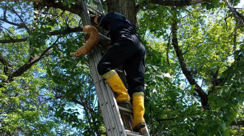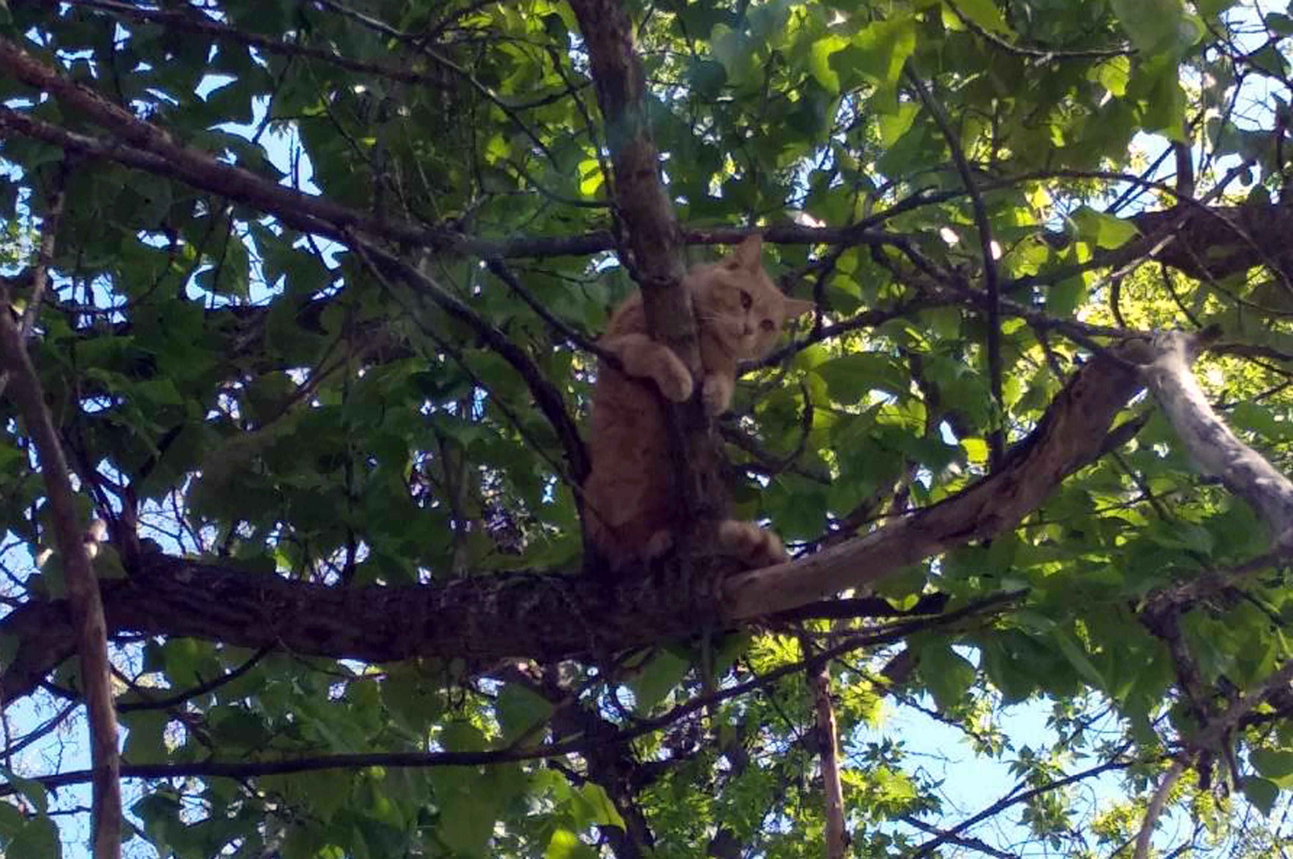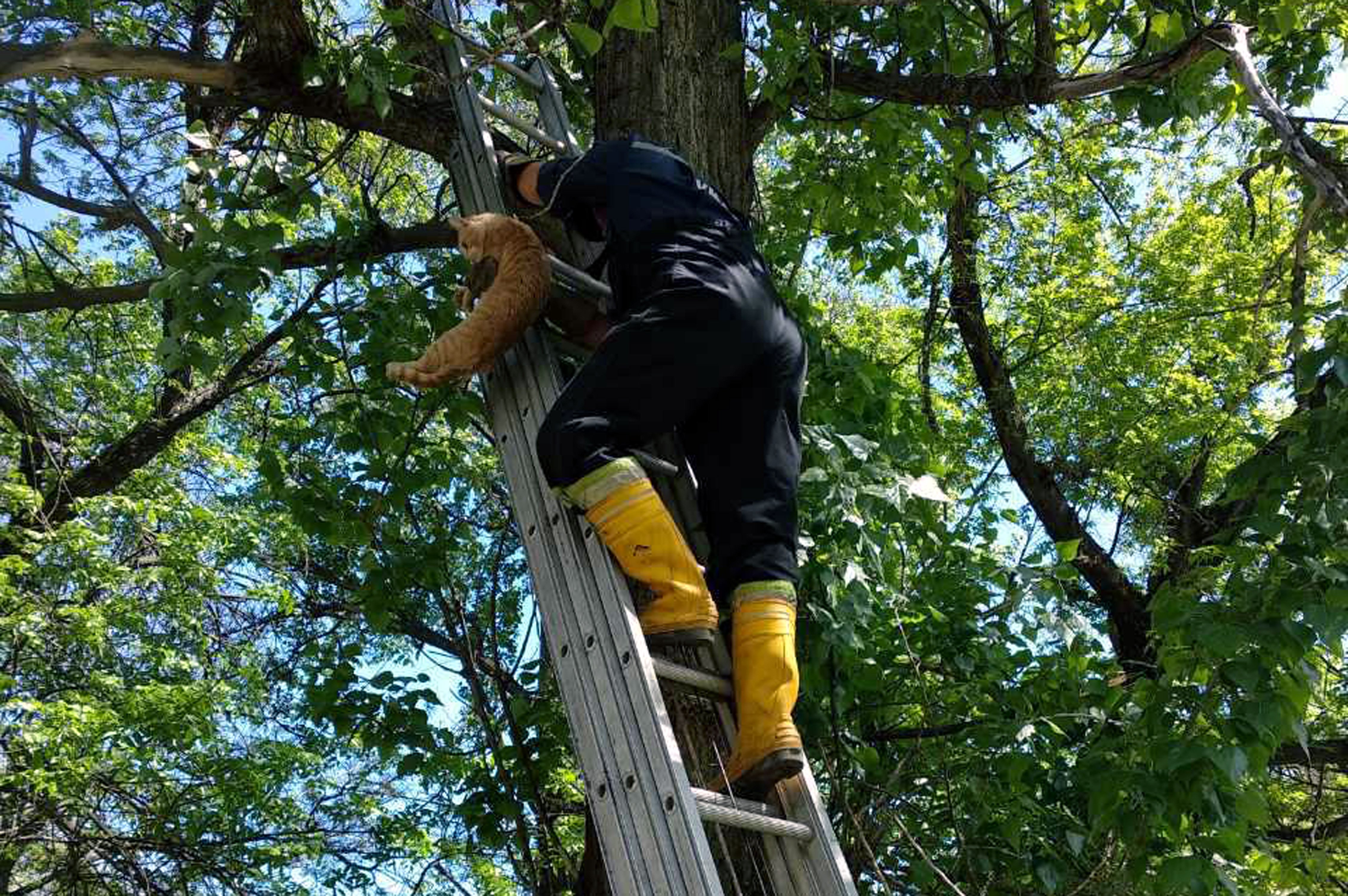 Вчора о 13:38 до Служби порятунку «101» міста Жовті Води зателефонувала стурбована жінка, яка мешкає по вулиці 8 Березня, та повідомила, що її кішка вилізла на дерево та не може самотужки злізти з нього.