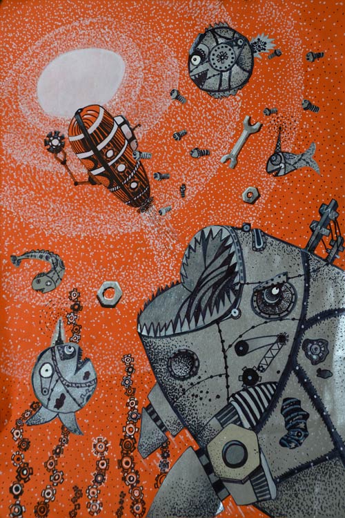 Работа Артема «Побег из техноокеании», выполненная в смешанной технике, набрала наибольшее количество голосов, и юный криворожанин стал абсолютным победителем фестиваля в своей возрастной категории. Надо сказать, что работа над этой картиной длилась в течение 9 месяцев.