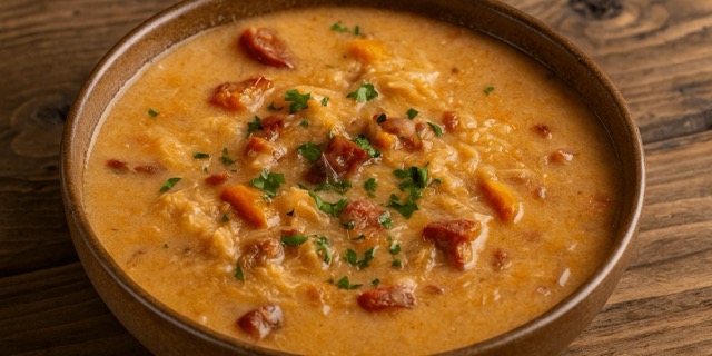 Густий, наваристий і ароматний — ракоці левеш давно став кулінарною візитівкою Закарпаття. Його смак — це поєднання диму копченого м’яса, ніжної кислинки квашеної капусти та вершковості сметани. Такий суп зігріє навіть у найпохмуріший день і нагадає про тепло домашнього вогнища.