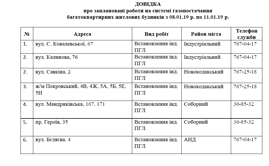 Возобновление газоснабжения ПАО “Днепрогаз” выполнит при отсутствии технических нарушений в работе газового оборудования, дымовых и вентиляционных каналов. Также обязательным условием возобновления газоснабжения является присутствие потребителей газа в каждой квартире.
