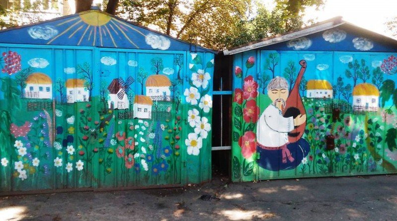 Жінка на ім’я Тетяна прикрасила власне та сусіднє подвір’я, а також гаражі у мікрорайоні Куренівка, що у Києві, чудовими малюнками на українську тематику. Така краса дуже сподобалась сусідами і вони поширюють фотографії у соцмережах.