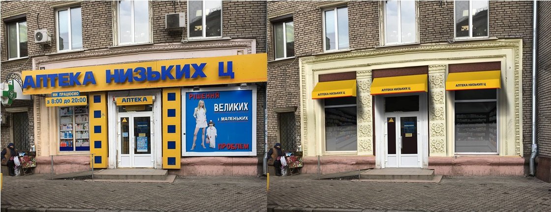На фото «после» показаны, как отдельные части улицы могут выглядеть после того, как рекламу уберут вовсе или разместят правильно.