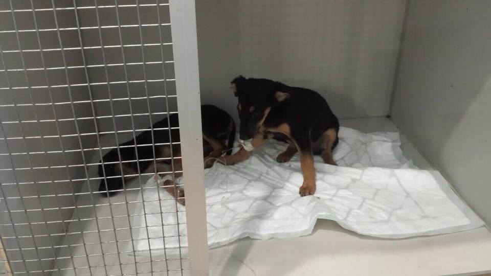 Волонтеры Днепра отловили на стоянке ж/м Красный Камень двух щенят и назвали их в честь известных грабителей – Бони и Клайдом. У малышей набор болезней – глистная инвазия, энтерит. Щенята находятся на стационаре в клинике.