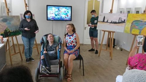 У рамках прес-туру «Як ідуть реформи на Сумщині» в місті Суми в Агенції промоції у журналістів була зустріч із неймовірними людьми – юною художницею Дашою Безкостою, яка через своє вроджене невиліковне захворювання малює ногами, та її мамою Оленою.