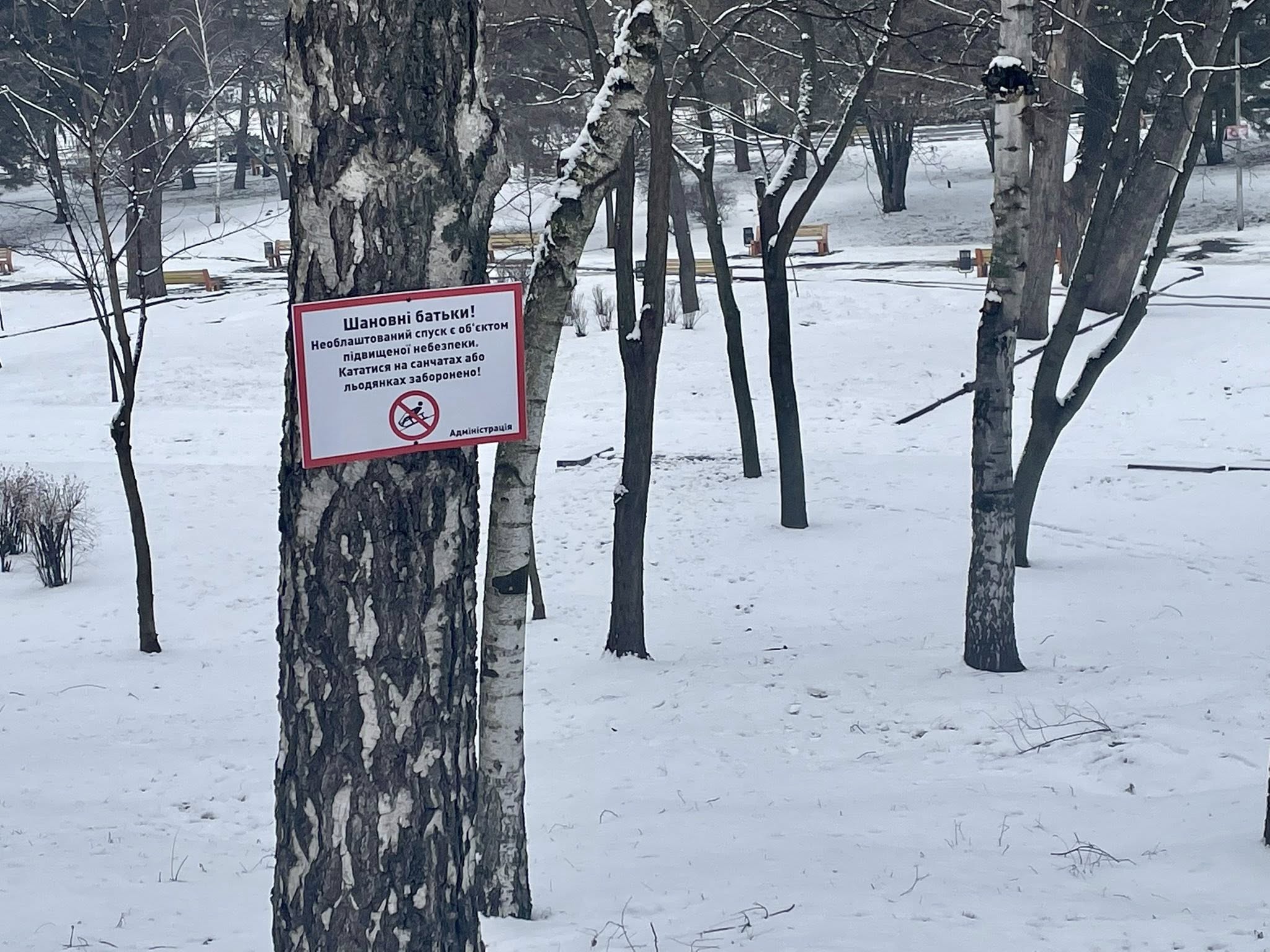 Містян закликають утриматися від катання на санчатах чи льодянках зі схилів, адже це може бути травмонебезпечним, особливо в парках зі значними перепадами висот. Застереження насамперед стосується таких локацій: парк Зелений Гай, парк імені Лазаря Глоби, парк Шевченка